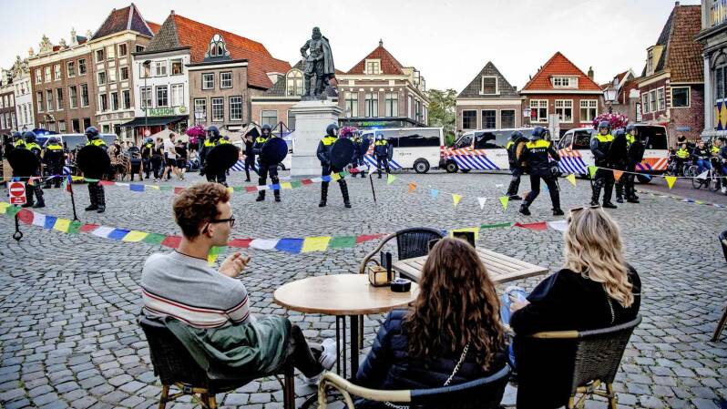 De politie om het standbeeld van Jan Pieterszoon Coen in Hoorn op 19 juni 2020. Onze geschiedenis en culturele identiteit wordt aangevallen en moet verdwijnen volgens sommige lieden. Onze nationale identiteit moet wijken omdat immigranten die hier vrijwillig zijn gaan wonen hier aanstoot aannemen. De omgekeerde wereld. Andersom wil men respect en begrip, maar op basis van eenrichtingsverkeer.